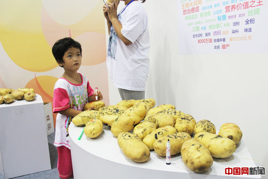A child draws on a potato. [Photo by Zhang Yanling/ China.org.cn]
