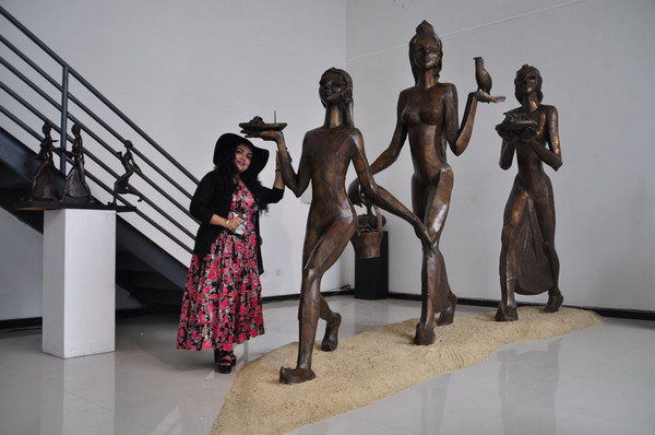 丽金雕塑作品《去寺庙的路上》(图片:中国网)