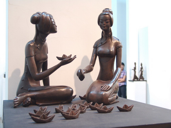 丽金雕塑作品《童年的记忆》系列(图片:中国网)