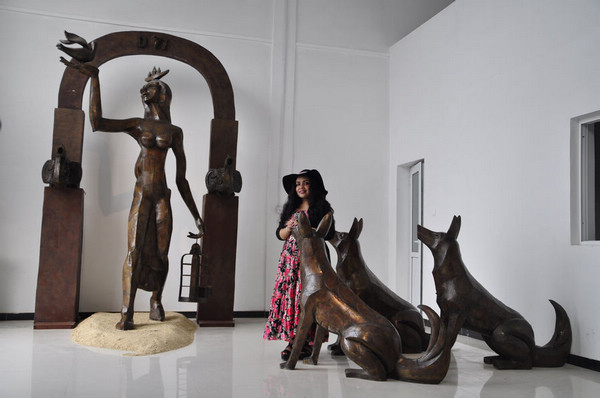 丽金雕塑作品《自由》(图片:中国网记者张军棉摄)
