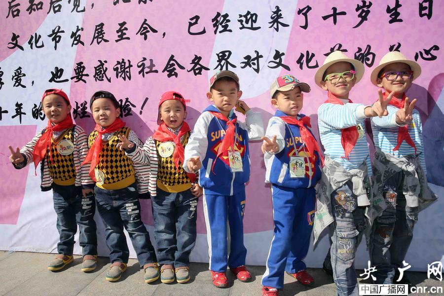 2013年10月2日,在北京双胞胎文化节上,拍摄的一对三胞胎和两对双胞胎。(央广网发 陈晓根 摄)