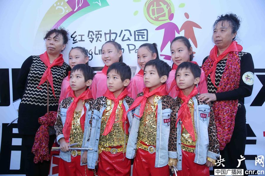 2013年10月2日,在北京双胞胎文化节上,两对四胞胎与一对双胞胎在活动现场合影留念。(央广网发 陈晓根 摄)