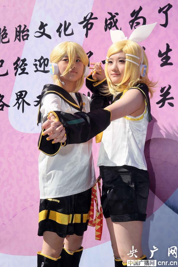 2013年10月2日,在北京双胞胎文化节上,一对双胞胎扮成动漫造型参加活动。(央广网发 陈晓根 摄)