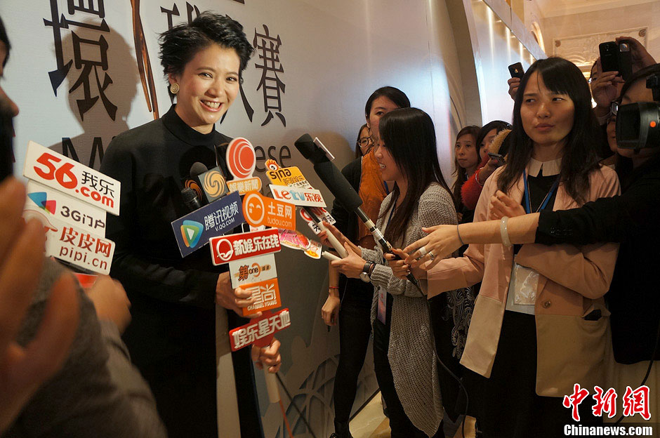 10月26日晚,“2013中华小姐环球大赛”总决赛在珠海举行。来自世界各地的12位中华小姐佳丽展开角逐。最终由年仅21岁来自北京就读于中国传媒大学的王瑾瑶夺得桂冠和最佳上镜奖,来自美国的牟冠红获得亚军,来自云南的曾越获得季军。图为袁咏仪助阵“华姐”决赛遭记者围堵。中新网记者周维 摄