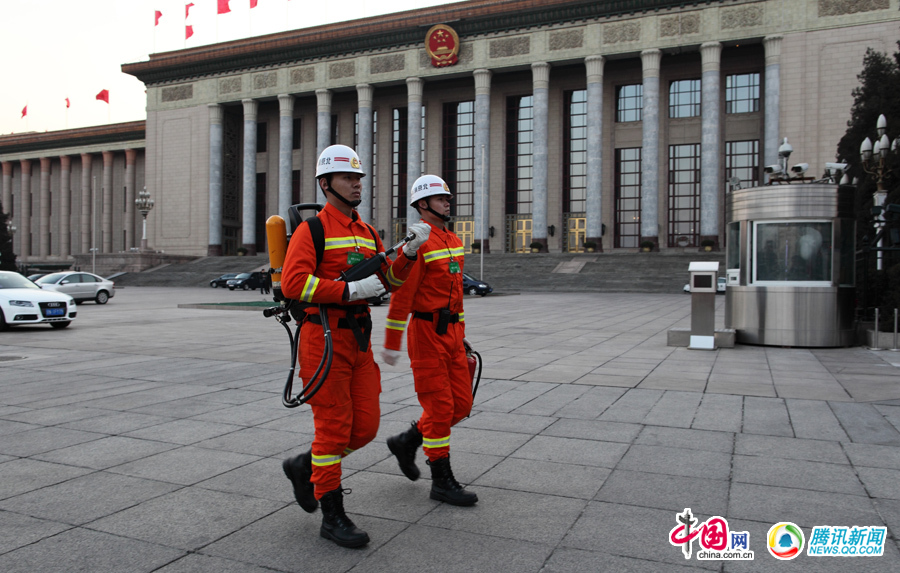 17点50分,李佳宁的战友徐云飞(画面左侧)和徐勇带上执勤装备,最后返回执勤车。徐云飞出生于1995年,是浙江金华人,和李佳宁一同入伍。徐勇也出生于1995年,2012年入伍,是江苏宿迁人。中国网陈维松 摄