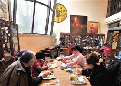 几位顾客在“问月楼”享用38元简餐和饺子。“问月楼”饭店位于国家4A级景区——北京紫竹院公园内,以前一般的菜都在百元以上,还有超过千元的菜品。2014年1月,北京市推进“会所中的歪风”专项整治工作,“问月楼”饭店拆除了影响公园景观的木质围栏,撤下了“游人止步”、“禁止入内”等标志牌,饭店调低收费标准,推出低价菜、特价菜,全面向市民开放。记者在饭店菜单上看到,调价后的菜品价格多数在百元内。