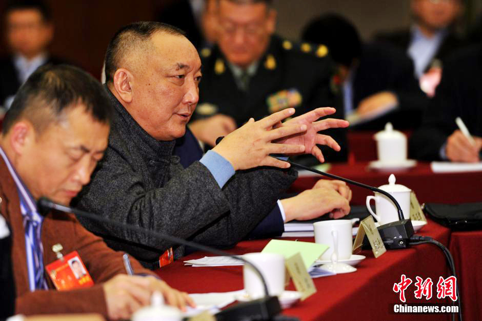 3月4日下午,全国政协委员韩三平参加联组会并发言。当日,全国政协十二届二次会议社科、新闻出版界别联组会在北京举行。中新社发 金硕摄