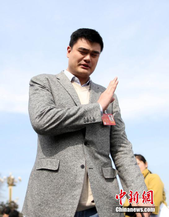 3月7日,姚明婉拒合影邀请。当日,全国政协十二届二次会议在北京人民大会堂举行第二次全体会议。张赫 摄 图片来源:东方IC 版权作品请勿转载