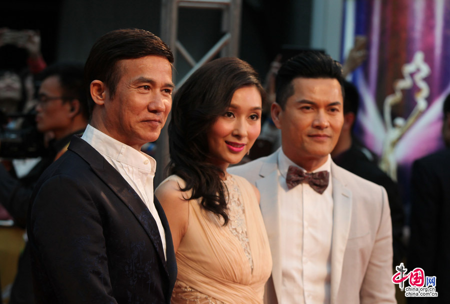 2014年4月16日,北京国家大剧院,第四届北京国际电影节开幕红毯秀,李子雄、黎姿与吕良伟。中国网 陈维松 摄