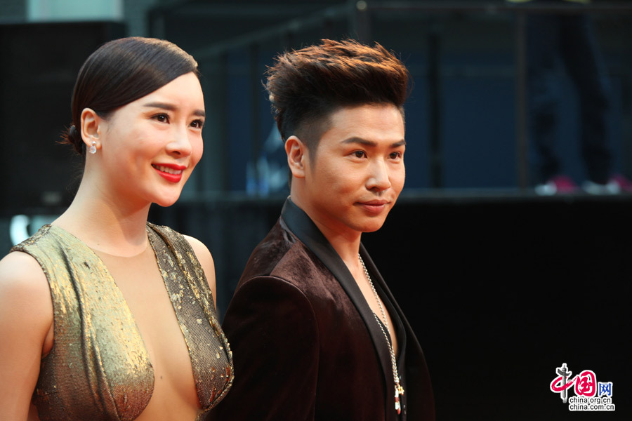2014年4月16日,北京国家大剧院,第四届北京国际电影节开幕红毯秀,欧弟与杨舒婷。中国网 陈维松 摄