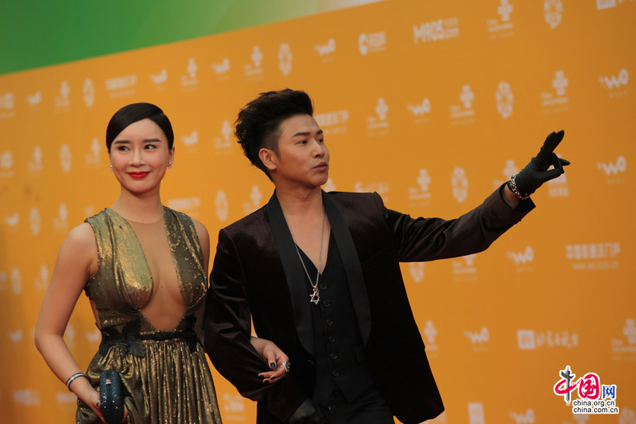 2014年4月16日,北京国家大剧院,第四届北京国际电影节开幕红毯秀,欧弟与杨舒婷。中国网 陈维松 摄