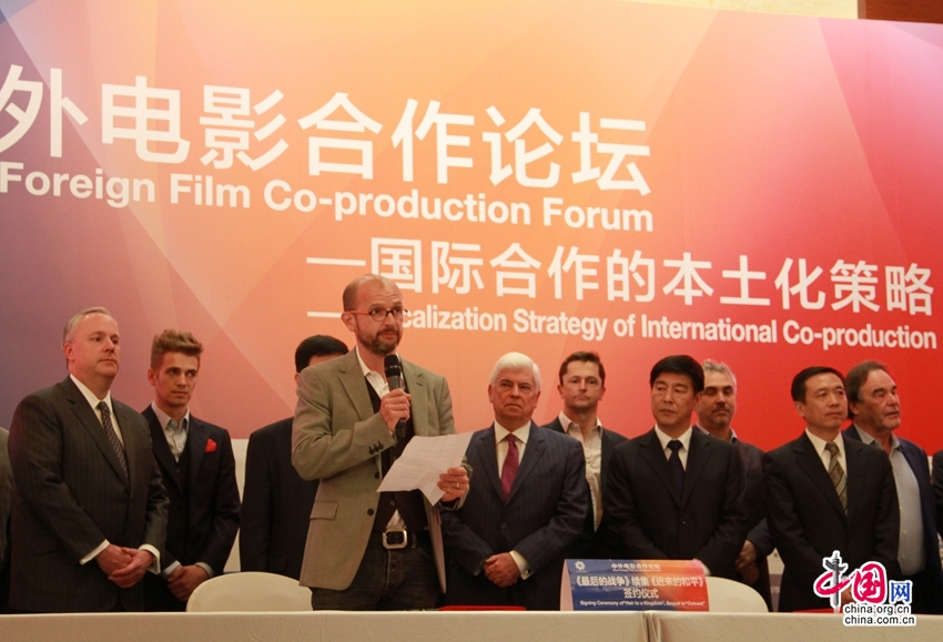 中国网4月17日讯 “中外电影合作论坛”今日在北京举行.国家新闻出版广电总局副局长童刚出席并致辞,美国导演奥利弗·斯通、墨西哥导演阿方索·卡隆、俄罗斯导演季莫尔·贝克曼贝托夫、法国演员让·雷诺、中国导演宁瀛等就“国际合作的本土化策略”进行对话。