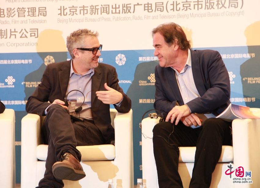 墨西哥导演阿方索.卡隆和美国导演奥利弗.斯通。