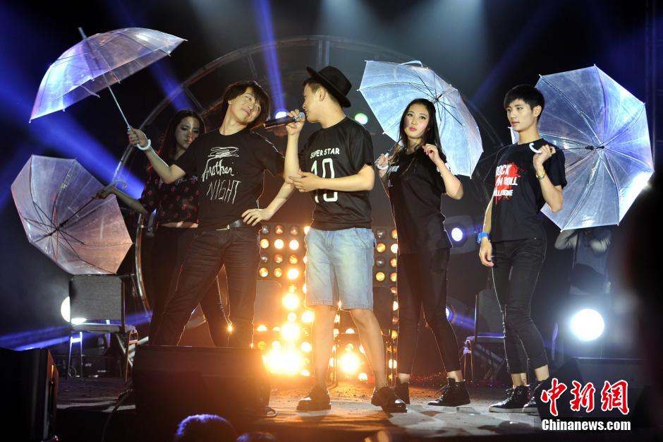 5月11日晚,北京语言大学第九届中外学生歌手大赛“Sing-A-Holic”决赛在该校逸夫体育馆拉开帷幕。当日,过海选斩复赛脱颖而出的11名优秀的中外校园歌手大展歌喉,为同学们带来一场美轮美奂的歌王争霸赛。本届大赛由青年歌唱家祖海、乐评人卫元强、音乐制作人杜昊、音乐人洛兵及音乐人龚鸣到场担任评委。各大使馆代表、北语的各职能部门领导老师和校园内的同学们一同莅临现场观看比赛。图为中外学生在比赛中。金硕摄