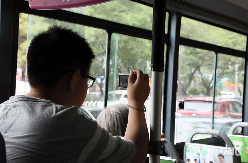 张圣童在网上看到728要撤销的消息后,就向父亲申请拍摄记录最后的728。父亲提醒他带好相机、手机和公交卡,5月25日,他便来到728上,一路走一路拍,他说百度贴吧上有很多人都在聊728。千龙网记者王卫摄