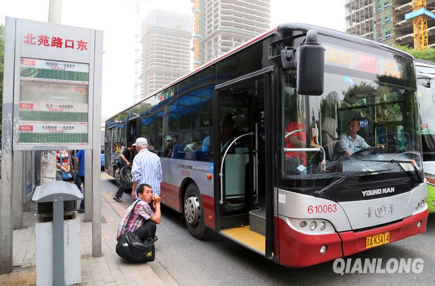 5月25日上午,人们在728路公交车所经的北苑路口东站上下车。2013年5月25日起,728路公交车便从这里上京通高速主路,一站就到达大北窑西站。这样的调整大大方便了家住东边,在大北窑附近工作的上班族。这样的线路试运行一年后,大家便被告知728定于2014年5月26日撤销。千龙网记者王卫摄