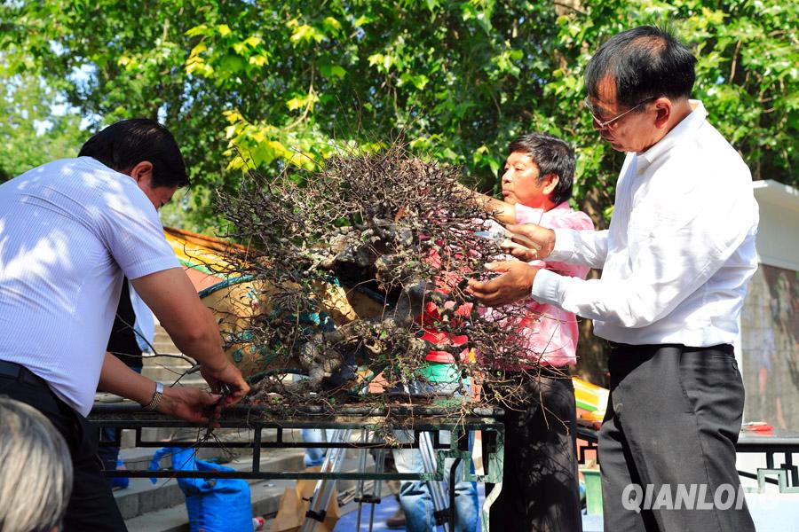 5月28日,“岭南盆景名家精品展”在北海公园开幕,吴成发、陈昌、黄就伟三位岭南盆景名家现场进行创作表演。此次展览将持续到6月8日,参展作品共200盆,造型有大树型、高耸型、飘斜型、悬崖型、丛林型、附石型,还有单干、双干、一头多干及水旱景等多种形式。千龙网记者杨理光摄