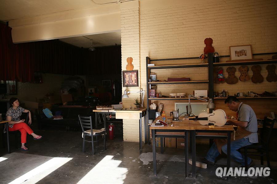 在提琴的制作中,最重要的步骤是油漆,它也是古代小提琴最神秘的地方,油漆的好坏直接影响提琴的品相和音质。(2014年5月29日摄)千龙网实习记者于颖摄
