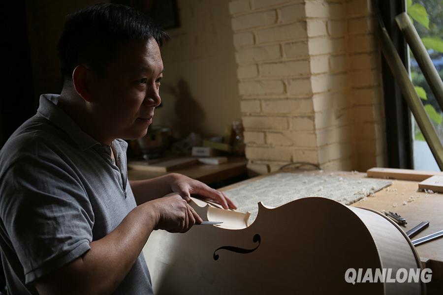 “提琴制作艺术是我一生的追求和永远无法完成的事业。”张安这样说,也一直用自己的双手,在木头中雕刻属于他的乐章。(2014年5月29日摄)千龙网实习记者于颖摄