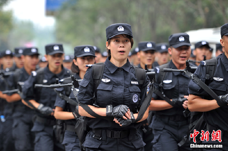 北京特警全副武装再拉练 美丽女警显英姿