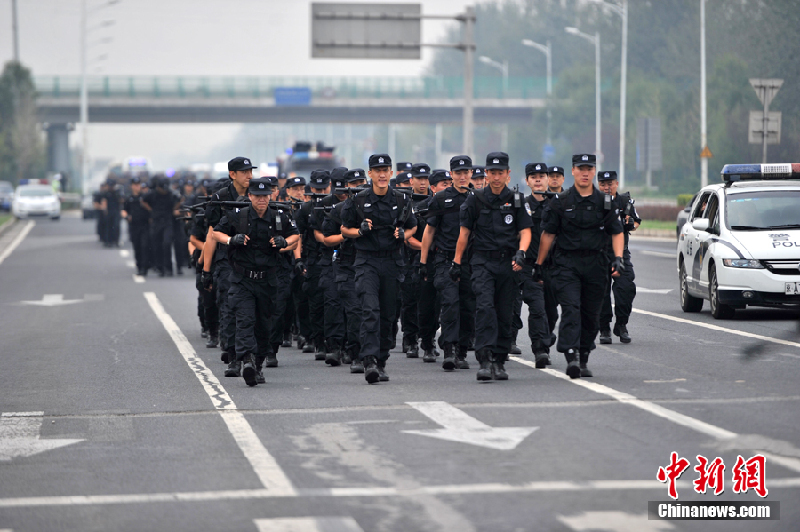7月24日上午,北京市公安局开展实兵徒步拉动反恐演练。(金硕 摄)