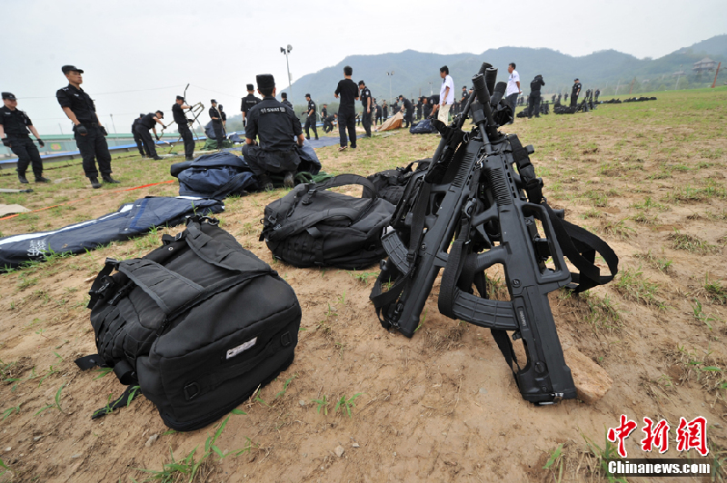 7月24日上午,北京市公安局开展实兵徒步拉动反恐演练。(金硕 摄)