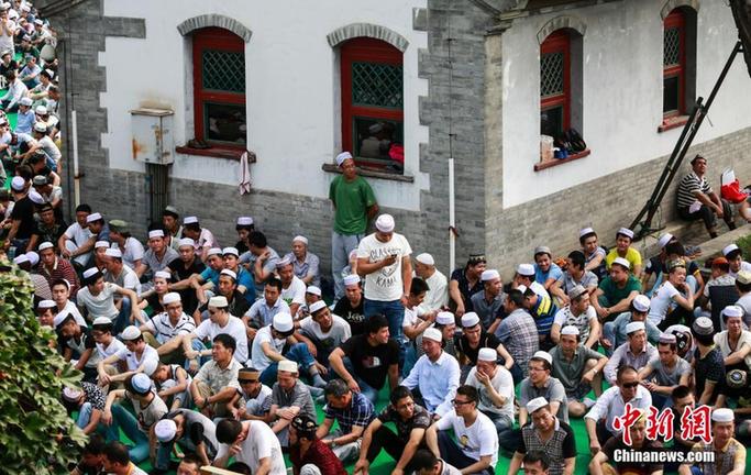 7月29日,穆斯林在北京牛街清真寺参加开斋节礼拜。当日是伊斯兰教开斋节,众多民众信徒到牛街清真寺参加礼拜等活动。中新社发 杨阳 摄
