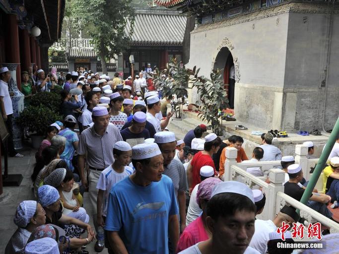 7月29日,北京牛街清真寺举办会礼活动。当日是伊斯兰开斋节。图为参加开斋节活动的信众。中新社发 徐冬冬 摄