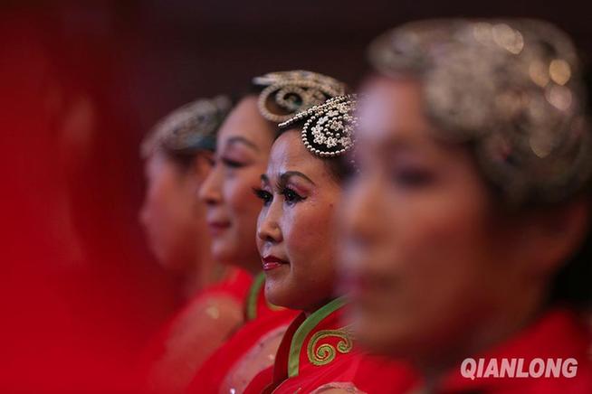 8月2日,参加演出的演员们有的已过花甲之年,她们静静的等待着上场表演。 千龙网记者 王悦摄