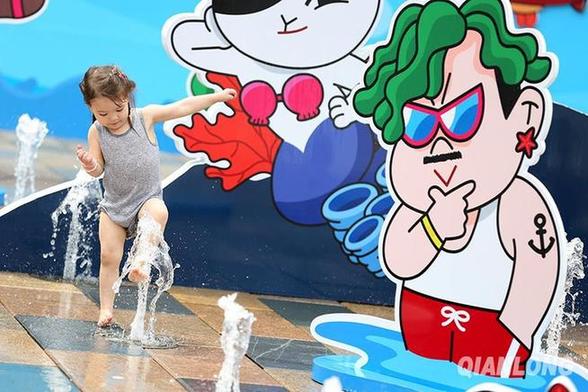 小姑娘光着的脚丫踩出了水花。千龙网记者王悦摄
