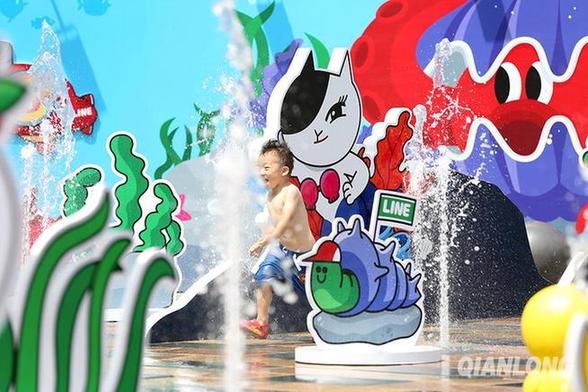 小朋友在卡通形象的喷泉中穿梭。千龙网记者王悦摄