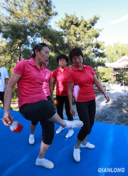8月24日,大观园内健身爱好者展示健身项目,当日,北京市第九届民族传统体育运动会闭幕。千龙网记者 戚连民摄