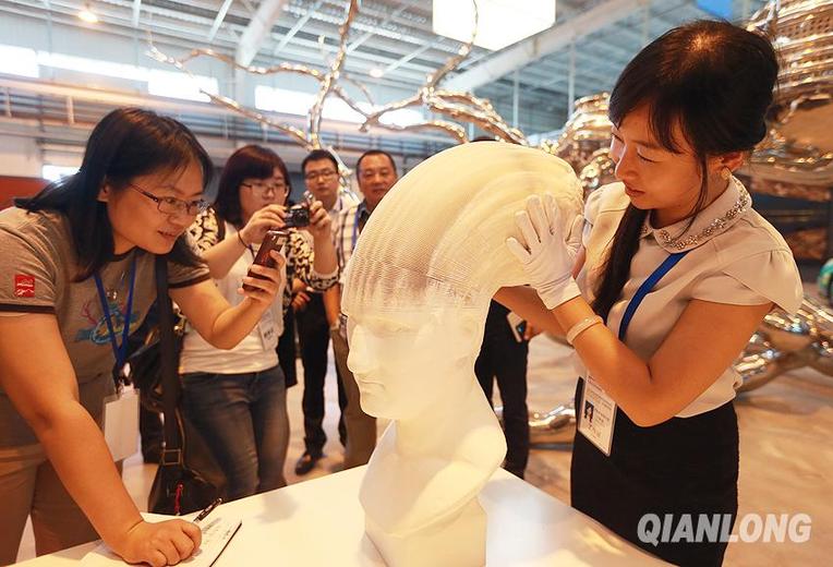8月25日,在艺术品贸易中心,工作人员向记者展示艺术作品。千龙网记者 戚连民摄