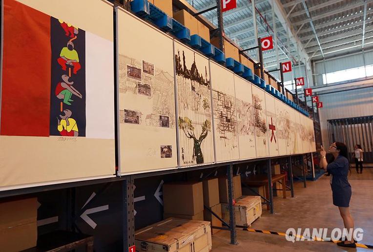8月25日,观众在国家对外文化贸易基地艺术品贸易中心区参观展示的艺术品。千龙网记者 戚连民摄