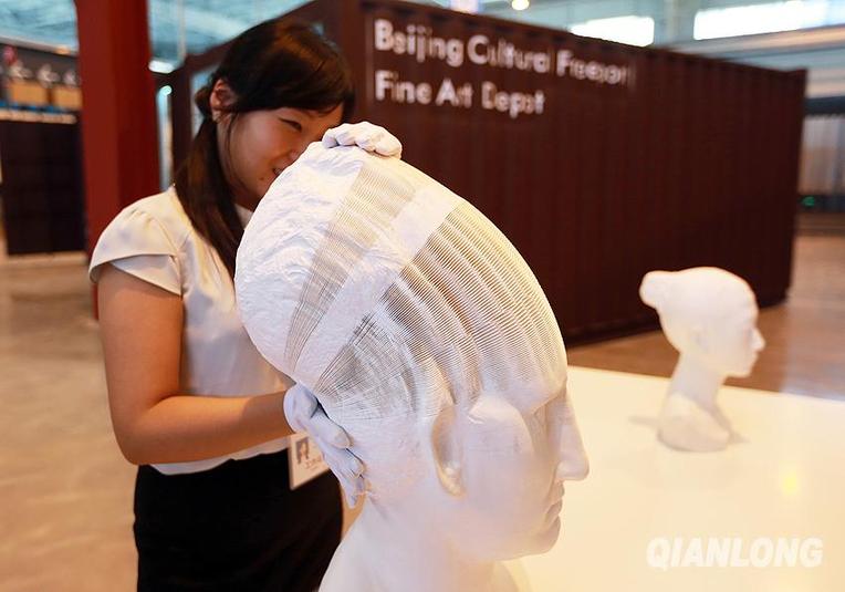 8月25日,在艺术品贸易中心工作人员向记者展示艺术作品。千龙网记者 戚连民摄