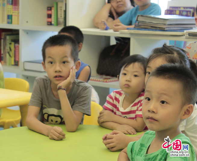 活动现场,小读者在认真得听恩德仁•爱瑞克森先生讲述《峻达岭小怪物》的故事。中国网李珅/摄