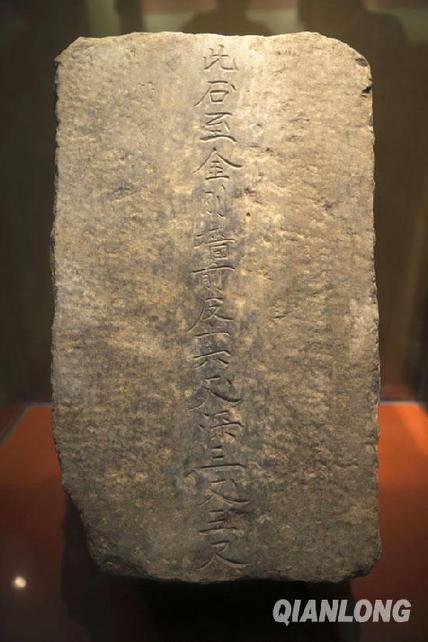 十三陵定陵地宫出土的小石碑指明了地宫入口的位置。千龙网记者 杨理光摄