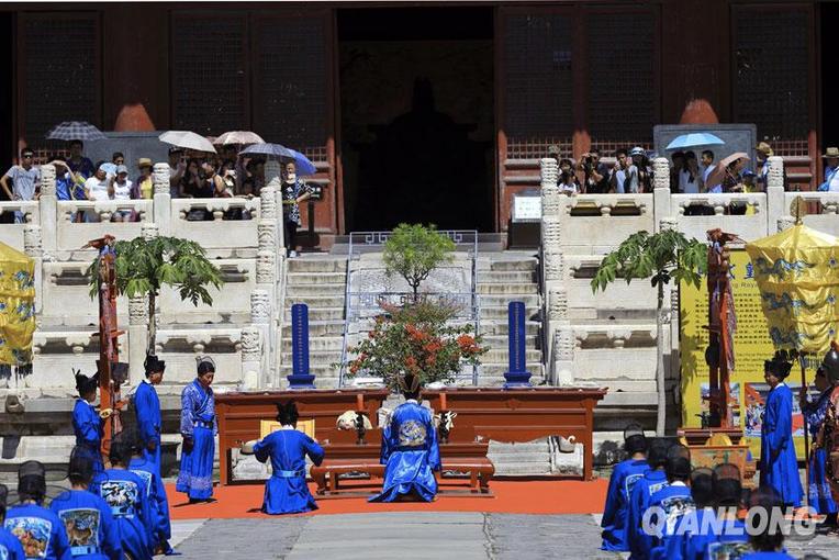 游客在此还能欣赏到皇家祭祀表演。图为8月26日,“万历皇帝”在长陵“祭拜”。千龙网记者 杨理光摄