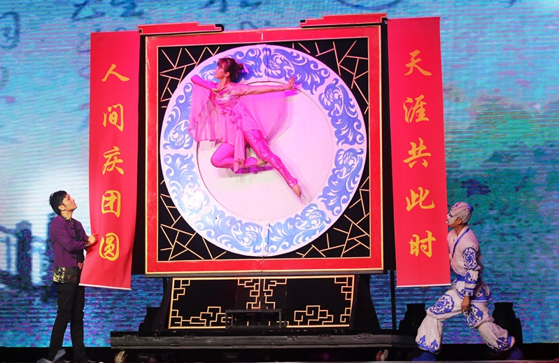 傅琰东(左)闭幕式表演魔术《青花瓷》,给观众送上中秋祝福