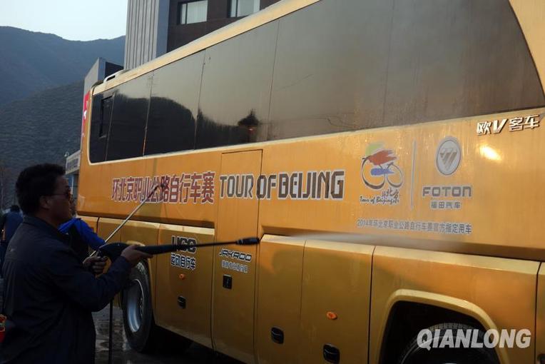 10月9日,工作人员清洁保障车。千龙网记者 戚连民摄