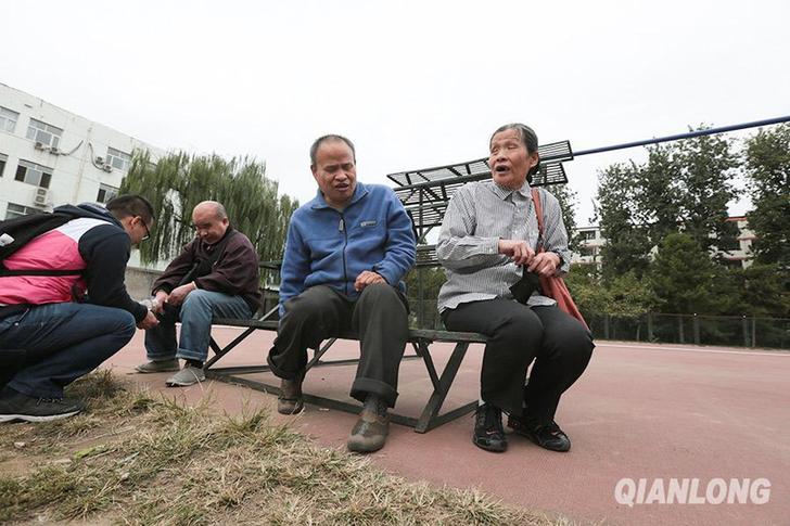 10月12日,两名盲人运动员在比赛间隙交谈。当日,红丹丹第六届盲人趣味运动会10月12日在北京体育大学西田径场举行,共有128位盲人运动员参加了比赛项目。千龙网记者李贺摄