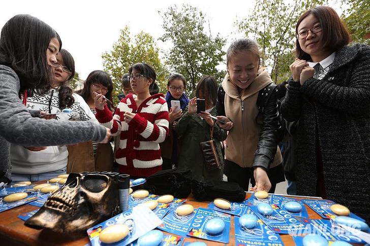 11月1日,得知消息的同学纷纷前来领取“防狼三宝”。千龙网记者王悦摄