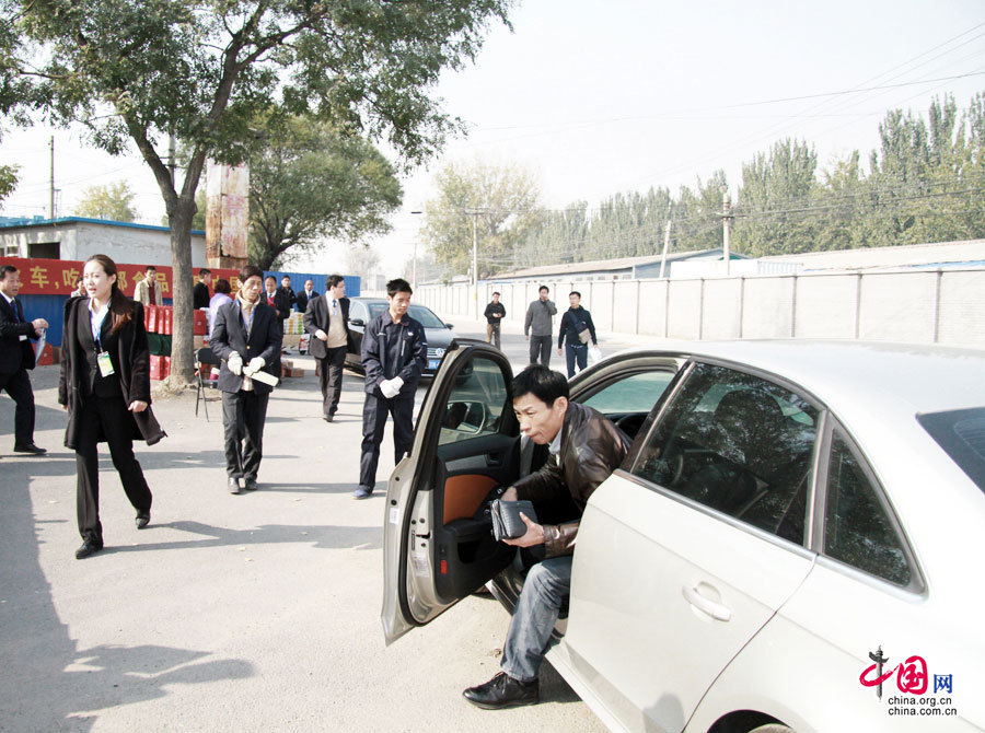 2014年11月4日 4日上午APEC会议放假期间,北京铁路局开行的六个方向自驾游汽车运输专列开始陆续装车和发车。截止11月3日报名申请参加自驾游汽车运输专列的车辆达到108辆,其中前往江南杭州地区的车辆最多达到了50辆。图为:来北京客货中心送车的旅客。中国网 宋一安 摄
