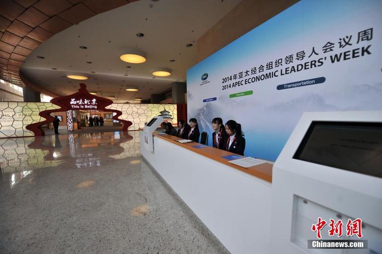 图为主会场的与会者签到处。中新网记者金硕 摄
