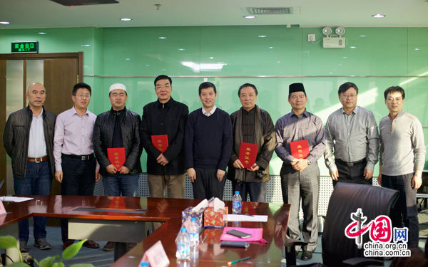 2014年11月21日,“2014年朝觐报道总结”座谈会举行。图为“2014年度中国朝觐报道优秀个人奖”获得者与座谈会领导合影。中国网吴闻达 摄