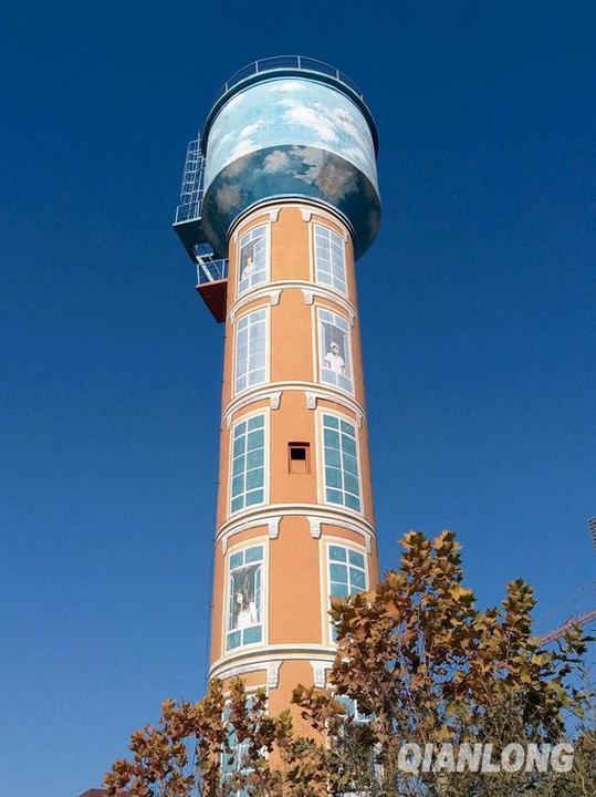 11月24日,东升科技园区临街的水塔被特意绘制成楼房的模样,五层画出来的窗户里都有一名神态各异的女子凭窗远眺。千龙网发