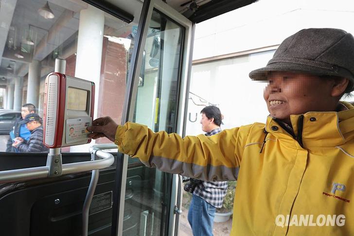 11月28日,北京首批领到智能残疾人证的市民试乘公交。千龙网记者 李贺摄