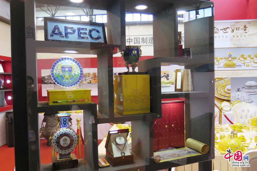 2014年12月11日,中国国际展览中心,APEC水立方国宴系列餐具。当日,持续四天的第九届中国北京国际文化创意产业博览会(简称文博会)在北京举办。中国网陈维松 摄