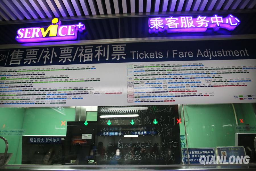 12月17日,北京地铁二号线长椿街站售票窗口贴出票价标识表,以方便乘客了解和熟悉新票价。千龙网记者 陈康摄