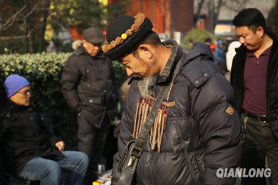报国寺是张扬个性的地方,随处都能看到装扮奇特的摊主或买家(12月18日摄)。 千龙网记者 陈康摄